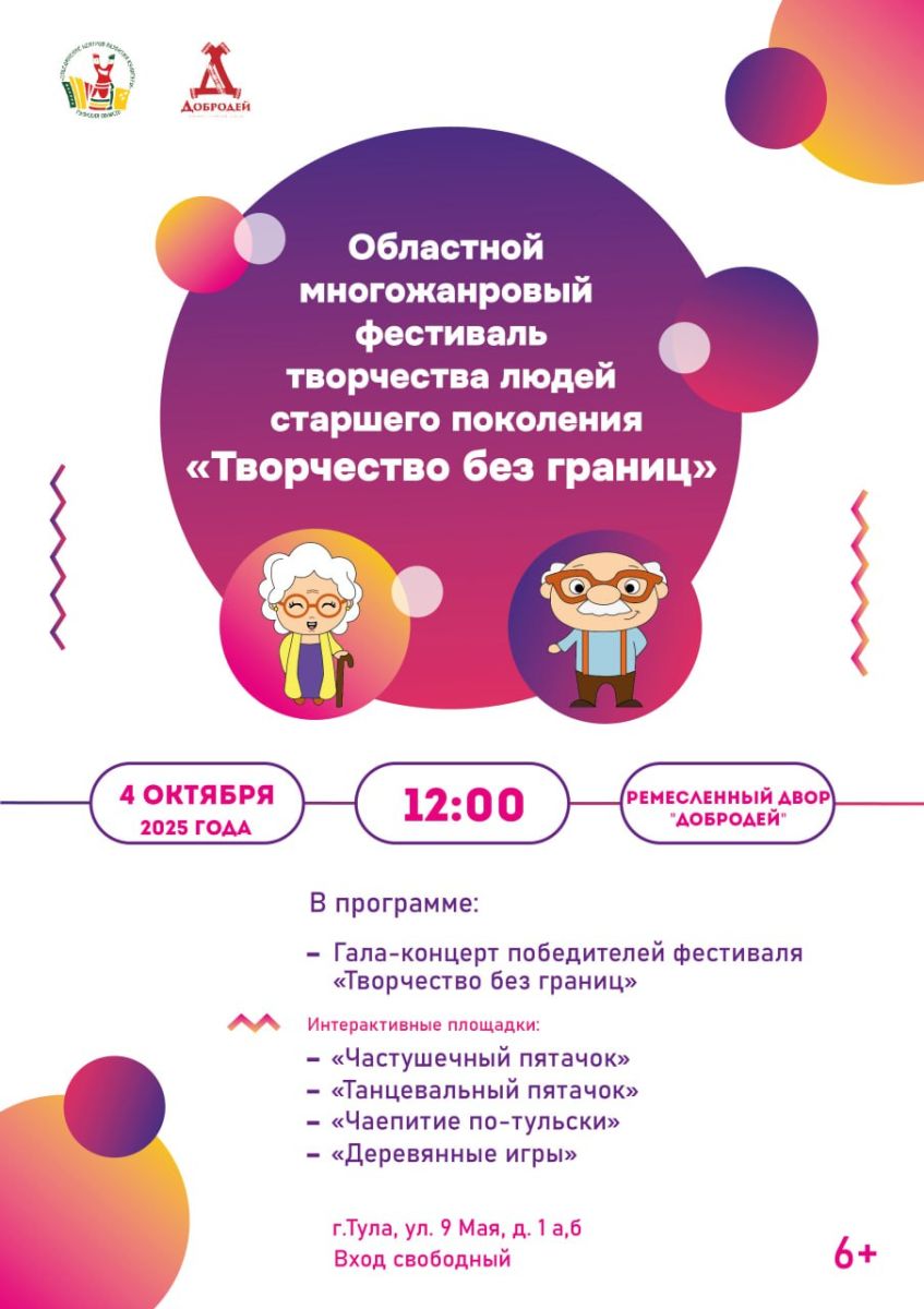 Фестиваль «Творчество без границ» приглашает туляков и гостей города всех возрастов на праздник талантов, доброты и внимания, приятных моментов и интересных знакомств.