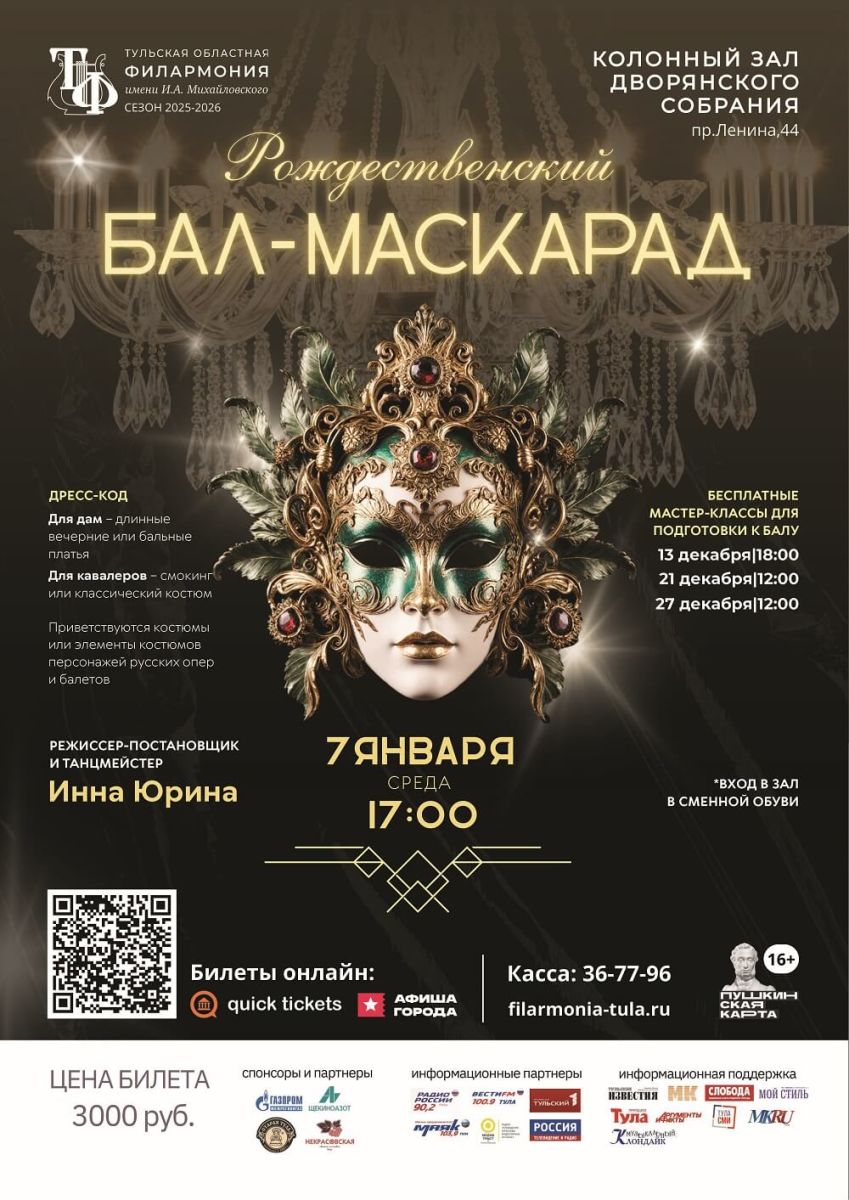 Тульская областная филармония приглашает жителей и гостей города на традиционный Рождественский бал-маскарад.