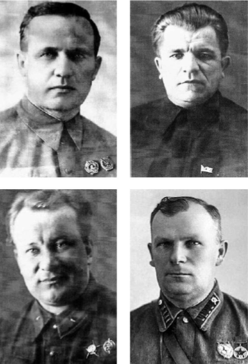 Слева направо, сверху вниз: В. Г. Жаворонков, Н. И. Чмутов, В. Н. Суходольский, А. К. Мельников