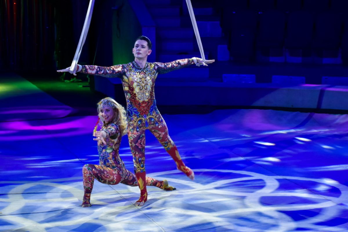 «Жар-птица» не обойдётся и без воздушных гимнастов. Зрителей ждёт встреча с дуэтом Екатерины и Сергея Остудиных, которые более 20 лет парят под куполом, выполняя сложнейшие трюки и поражая зрителей своим мастерством.