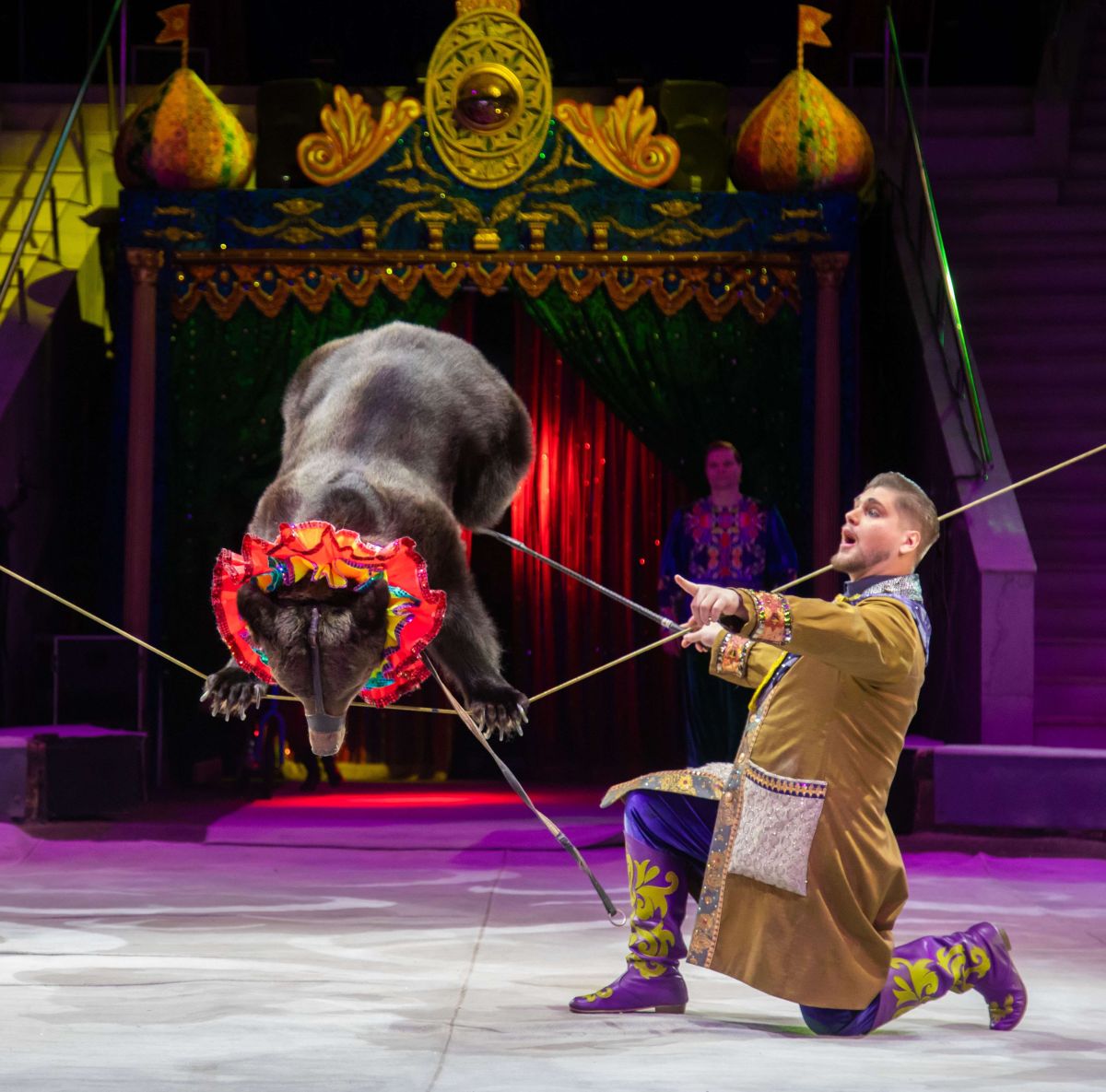 В номере «А ля русс» зрители увидят даже самых юных питомцев — среди них будет шестимесячная медведица Маша. Её история началась трагично: почти бездыханного медвежонка нашли в лесу Краснодарского края. Малышку выходили и передали в цирк, где о ней продолжают заботиться.