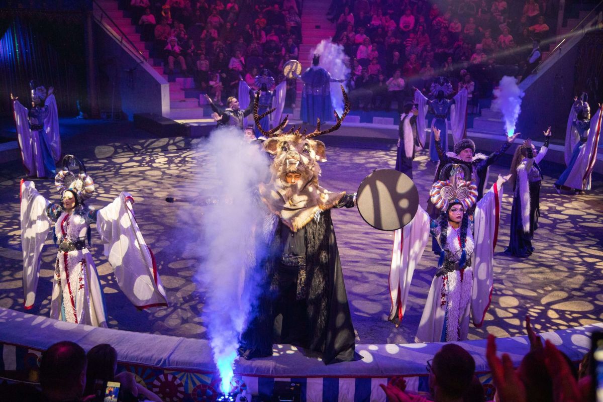 Потрясает «северный» номер: шаманы с бубнами, будто в снежном вихре - стремительные кони и лихие наездники.