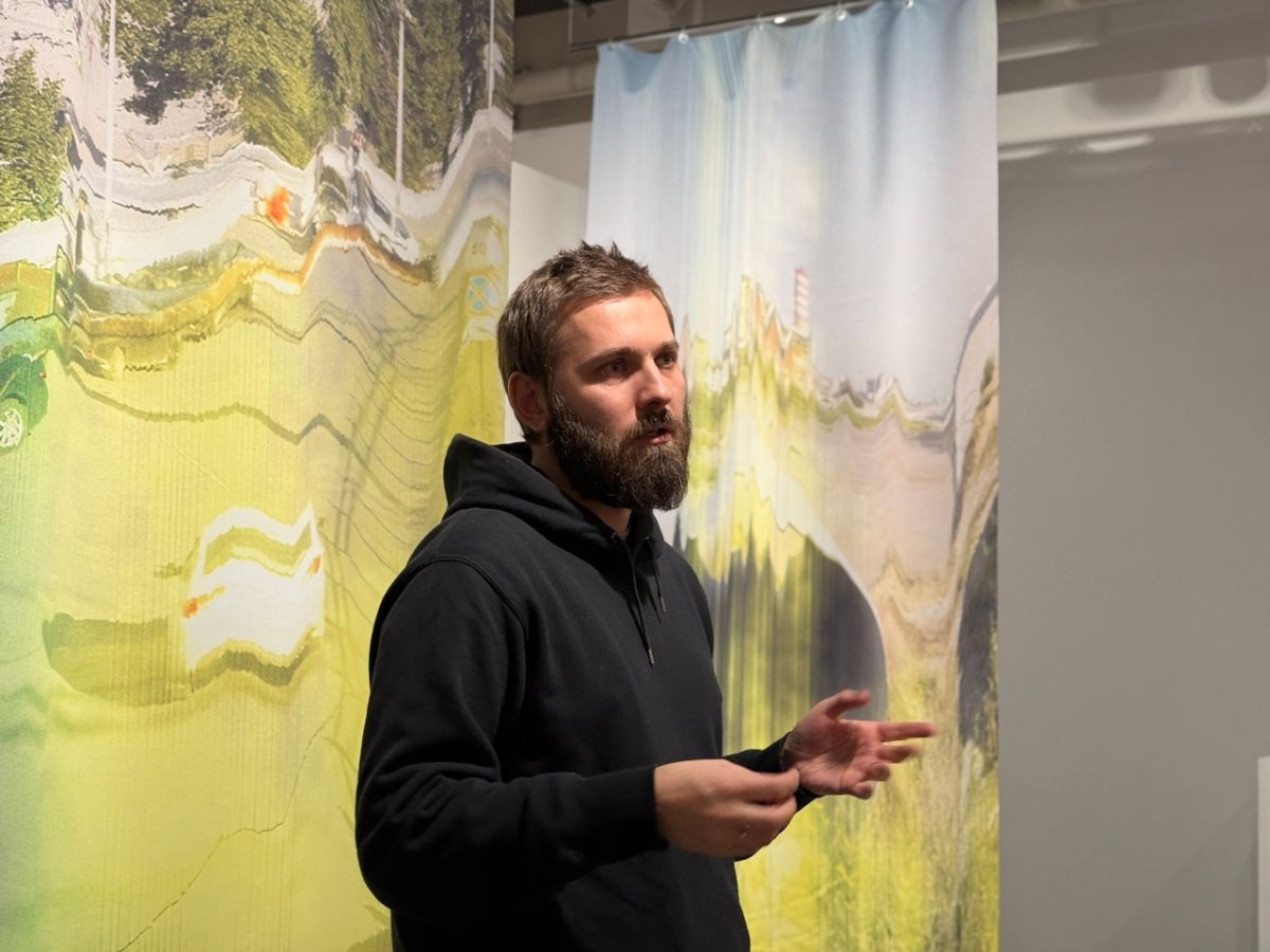 Первой точкой на карте проекта стали Березники в Пермском крае, где добывают титан. Сергей показал это место через серию гравировок: фотографии искажены спектрограммой песни о малых городах, а переливы цвета напоминают срез металла – ключевого ресурса региона.