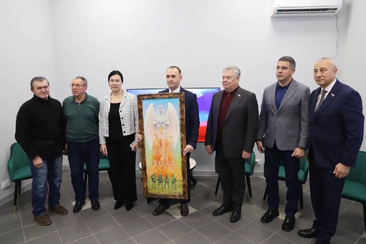 Также на встрече ветераны боевых действий и волонтеры передали в дар Центру «Герой 71» картину местного художника Валерия Давыдова.