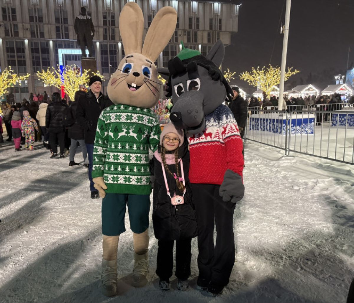 Дед Мороз, Снегурочка, Чебурашка, Волк и Заяц из «Ну, погоди!» и другие сказочные герои устраивали конкурсы и игры.