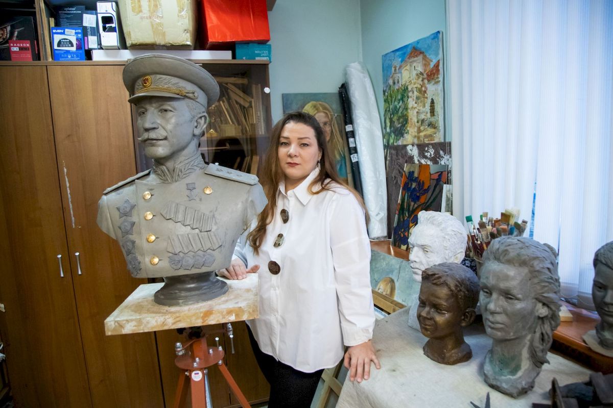 – Много кем мечтала стать. Выпускница Тульской художественной школы имени В. Д. Поленова, я потом училась в художественном училище в Орле и в этом же городе окончила институт. При этом никогда не думала, что стану скульптором. Тем более что скульптурой я занималась только на уроках в художественной школе, да и те, к сожалению, часто пропускала. В профессию меня привела керамика. По окончании института я получила предложение от одной из компаний слепить черепаху длиной сантиметров 80. Что у меня из этого выйдет, я не знала, но за дело принялась. Черепашка получилась чудесная. И потом лет пять я делала керамические фигуры животных. Это не была академическая скульптура. Это были фигурки для украшения ландшафта. Вскоре мне захотелось делать собственные проекты – большие и серьезные. Мне хотелось устраивать выставки, рисовать картины, в том числе портреты, расписывать интерьеры… Причем не только на заказ. Мне хотелось делать то, что просит душа. Все это потихоньку привело к тому, что я поняла: хочу быть скульптором. Когда очень хочешь, сами знаете… А сейчас я мечтаю создать красивый парк со скульптурами, которые связывала бы или сюжетная линия, очень важная и для страны, и для нашего края, объединяющая события какой-то исторической эпохи, или большая личность, вокруг которой будут «выстроены» события. Иногда мой внутренний голос спрашивает меня: имеешь ли ты право делать то, что делаешь? Но мое желание заниматься скульптурой настолько велико, что тот же голос, рассеивая все сомнения, отвечает: хочешь – получается – иди дальше, только вперед. И я иду. И очень рада, что мои работы нравятся людям. Какая оценка может быть выше?
