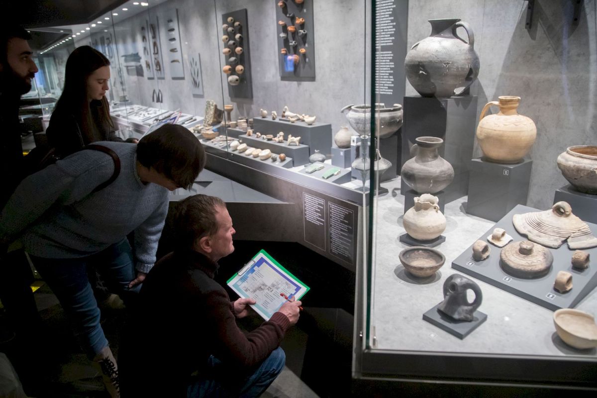 Наконец, экскурсанты оказываются в третьем зале выставочного комплекса «Тульского кремля». Он называется «Музей археологии». Его «хозяин» Виктор Гапоненко рассказывает участникам квеста об экспонатах из металла, камня, органики, стекла – предметах или их частях, размещенных в главной витрине – в полу, покрытом стеклом, или в витринах вдоль стен. Все эти предметы были обнаружены на территории Тульского кремля во время проводившихся здесь раскопок.