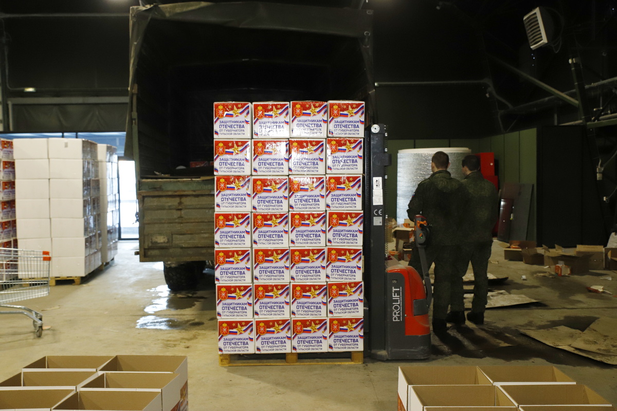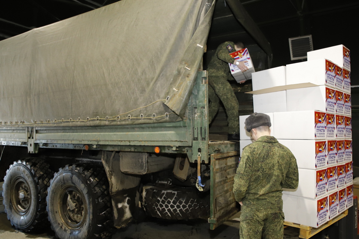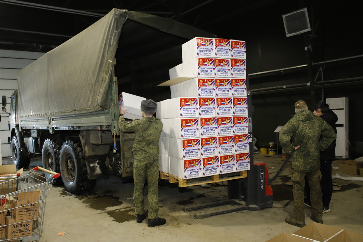 Погрузка подарков ко Дню защитника Отечества военнослужащим в зоне СВО