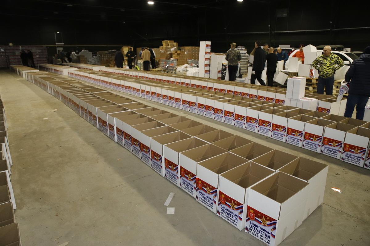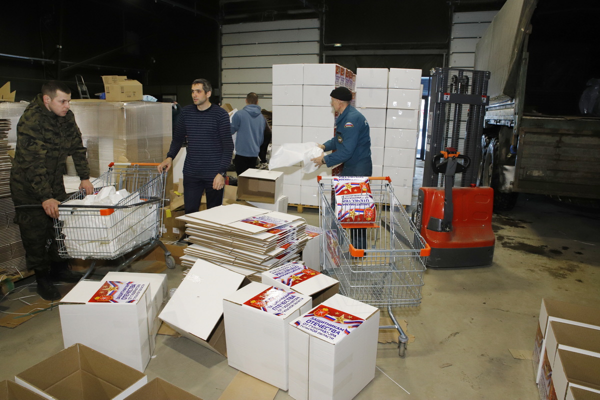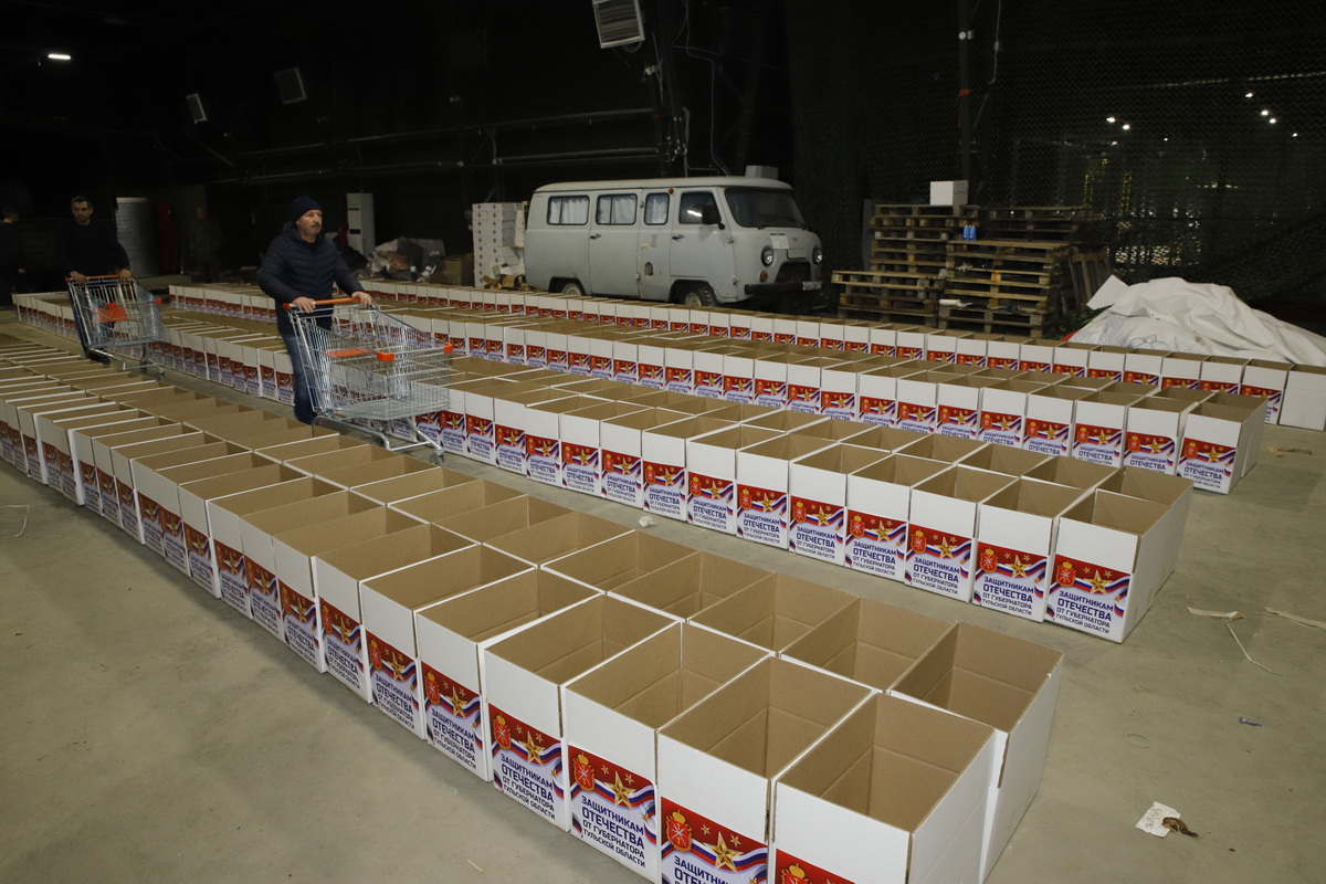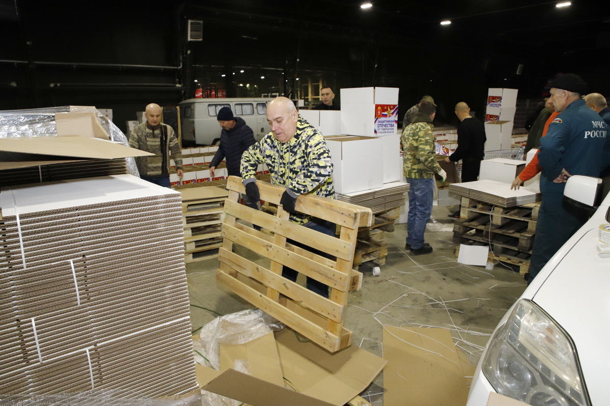Погрузка подарков ко Дню защитника Отечества военнослужащим в зоне СВО