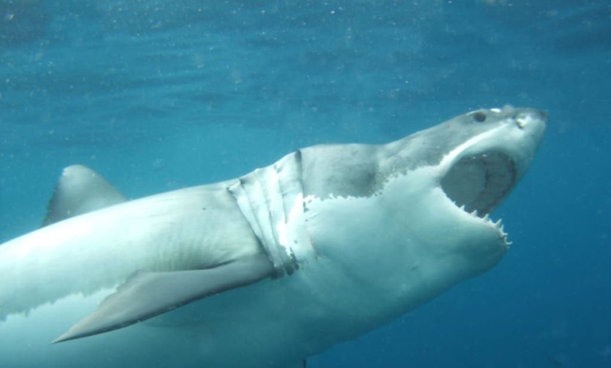 В клетке с белой акулой