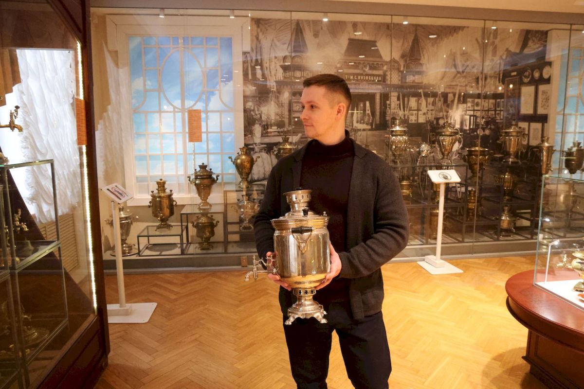 – Я учился в четвертом или пятом классе, когда в рамках одной из поездок с учителем в Тулу мы после экскурсии пили чай из самовара. Я первый раз увидел самовар, что называется, вживую, и был поражён его необычным внешним видом. Более близкое наше знакомство состоялось в 2018 году, когда я, уже имея диплом бакалавра по направлению «Реклама и связи с общественностью», учился на первом курсе магистратуры Тульского государственного университета по направлению «социология». Мне сказали, что в «Музей пряника» требуется специалист по рекламе, а поскольку у нас уже была возможность совмещать учёбу и работу, я решил попробовать трудоустроиться. Пришёл. Оказалось, искали специалиста в музей «Тульские самовары». И не пиарщика, а экскурсовода. Меня прекрасно приняли, рассказали о своих требованиях. Я подумал: почему бы и нет? Уметь говорить, общаться с аудиторией, находить подход к каждому – это то, чему я учился четыре года. И хотя направление у меня было уже другое, оно тоже связано с работой с людьми. Начал экскурсоводом, а в 2021 году был назначен на должность заведующего музеем «Тульские самовары».