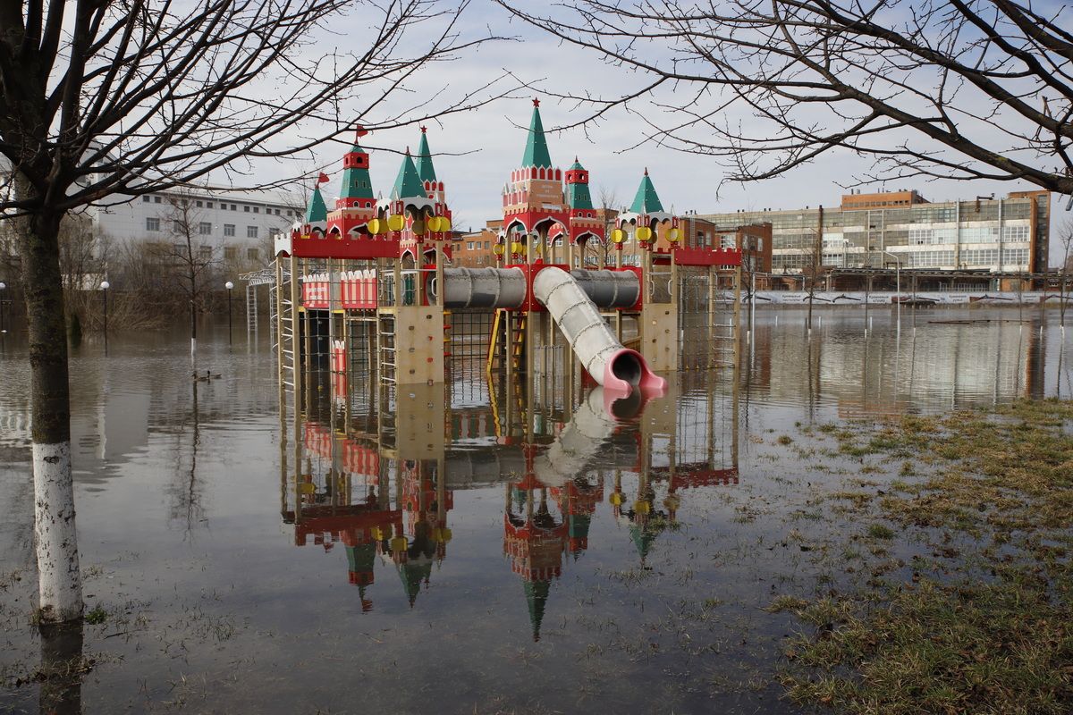 На Пролетарской набережной уровень воды пока остаётся высоким - этому свидетельствуют подтопленные лавки детской площадки, до которых можно пока добраться только вплавь. Знаменитое кафе «Том Сойер» остаётся затопленным наполовину, декоративная лодка и деревья возле него до сих пор находятся под водой.