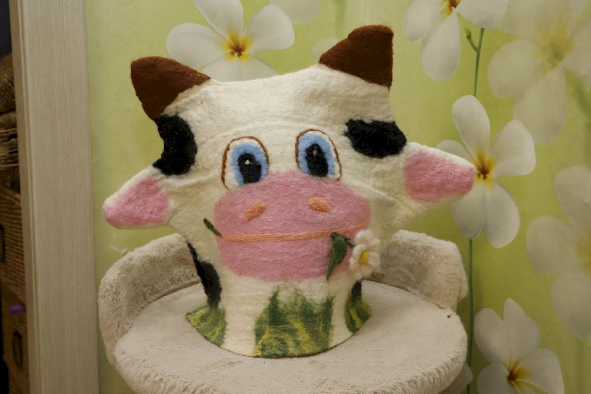 – Шестой год. А началось моё увлечение (до этого я посещала танцевальную студию) с Дня города. Он проходит в Узловой в августе. На одном из мастер-классов увидела, как из обычного клочка шерсти вдруг «выросла» брошка-ромашка. Проводила этот мастер-класс мой будущий педагог Ирина Николаевна. Мне так это понравилось, что в начале учебного года я пришла к ней и сказала, что хочу у неё заниматься. Научилась многому – и созданию картин из шерсти, и валянию игрушек, и изготовлению из валяной шерсти шапок. Шапок у меня, видите, тоже несколько. Одну мама даже собиралась носить. Потом передумала: решила, что слишком большое внимание будет к себе привлекать. Но, между прочим, мои шапки ей очень идут.