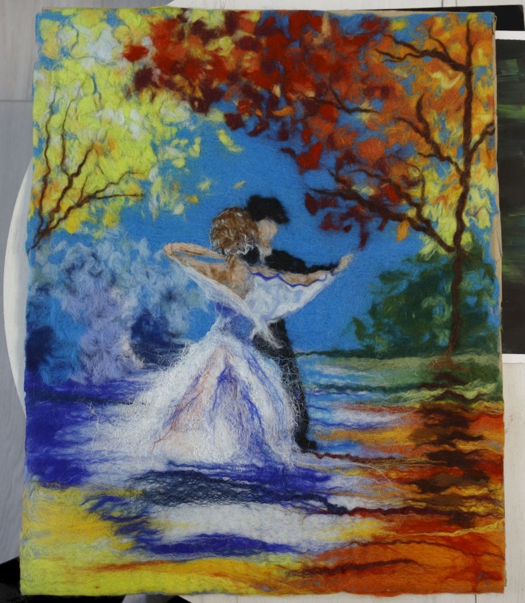 – Создавать новое. От задумки до воплощения. Не срисовывать, а делать абсолютно своё. У меня появились работы, в которых я использую фетр – плотное нетканое полотно, изготовленное методом сухого валяния. Техника создания таких картин совершенно другая. Если в шерстяной акварели рисунок выкладывается разноцветными кусочками шерсти, то фетр специальными иголками в основное полотно вбивается. Это так называемое ложное валяние.